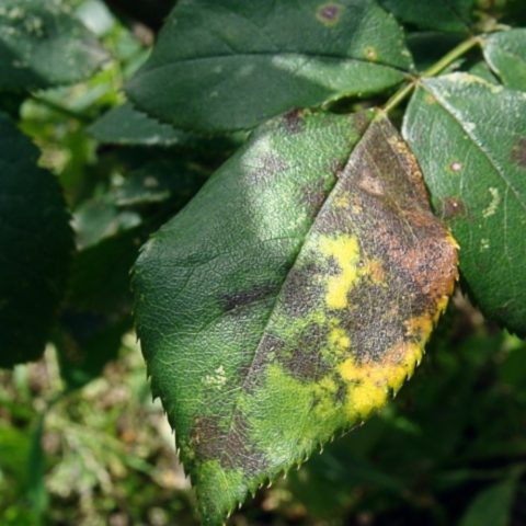 - Mancha negra... A doença se desenvolve durante o período de chuvas prolongadas. É caracterizada por pontos pretos nas folhas que aumentam gradualmente de tamanho. Como resultado, os rebentos ficam completamente nus, o que prejudica o efeito decorativo do arbusto. Para o tratamento, use o fungicida "Skor".