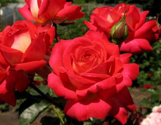 O ramo inglês do solstício de verão surgiu da variedade floribunda herdou a floração abundante de flores grandes e hastes longas e fortes do representante do chá híbrido.