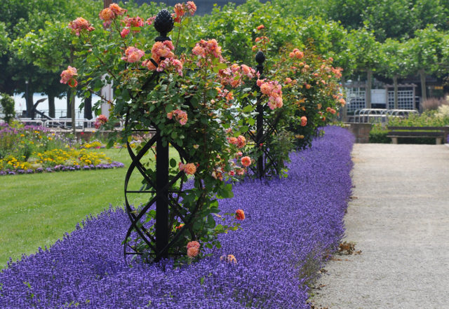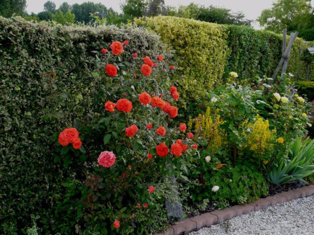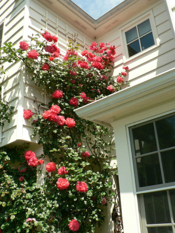 - Floribunda Midsummer pode ser usado para decorar as paredes de um edifício.