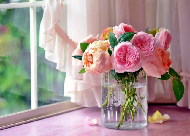 Em um vaso após o corte, a rosa Alexandra de Kent permanece fresca por até 10 dias