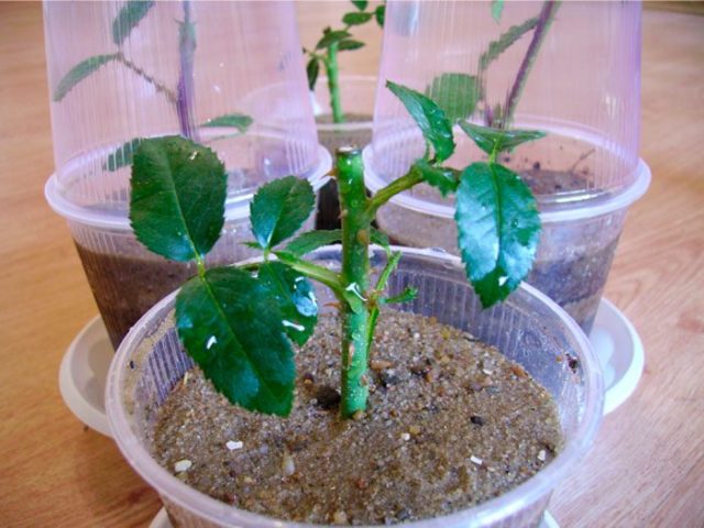 Em um mês, as mudas da Rosa Princesa Alexandra de Kent terão raízes e folhas.