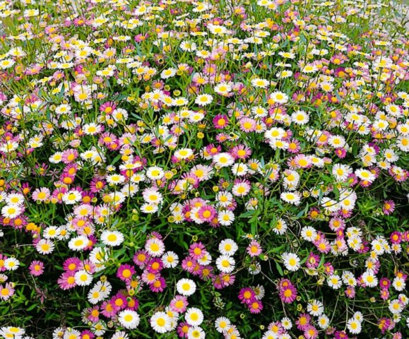 Perene é a melhor opção para cultivo em estruturas suspensas, em canteiros de flores. A altura da profusão de Karvinsky (profusão) de pétalas pequenas chega a 15 cm. Se a flor crescer livremente, ela pode se espalhar até meio metro de diâmetro. Externamente, as cestas de erigeron parecem margaridas.