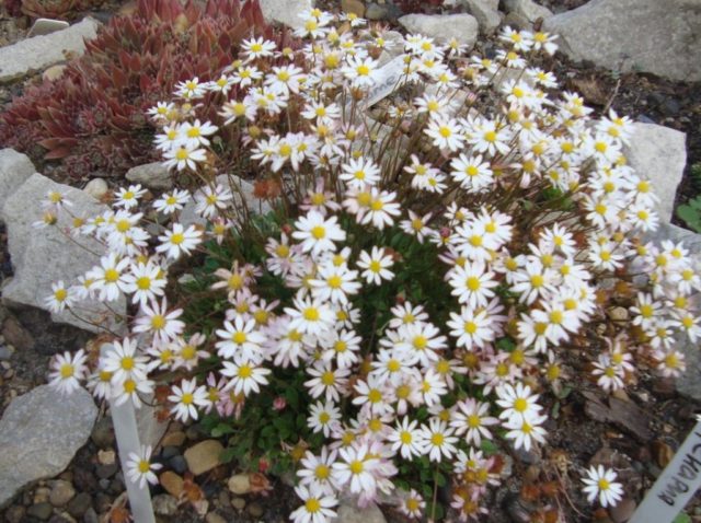 A maioria das variedades tem flores que se parecem com uma margarida na foto. Nas pequenas pétalas perenes, os botões são frequentemente solitários, embora existam espécies em que os cestos são coletados em inflorescências. As pétalas são alongadas, unidas em taças. A cor dos botões é variada: branco, rosa, amarelo, lilás. O tamanho médio de cada flor é de 3 cm de diâmetro.