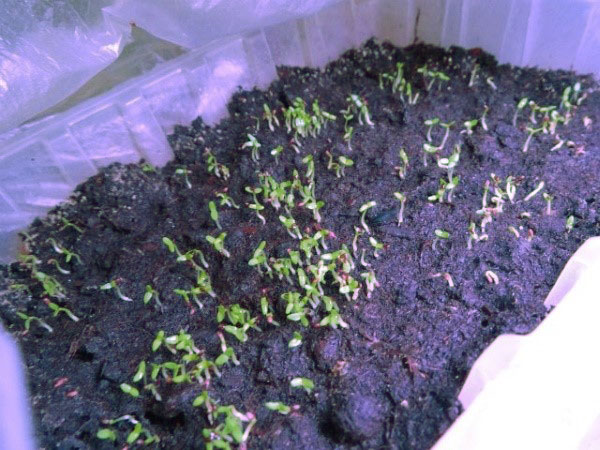 As sementes são colocadas em fevereiro em recipientes de plástico ou madeira: