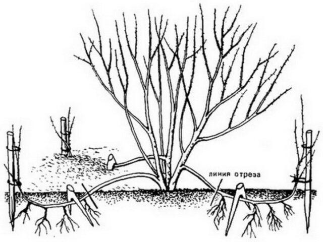 Os brotos das raízes são formados no círculo próximo ao caule. Ao escavar o solo, danificam inevitavelmente os rizomas, provocando o aparecimento de novos rebentos. Os brotos são transplantados para um novo local no início da primavera ou no final do outono.