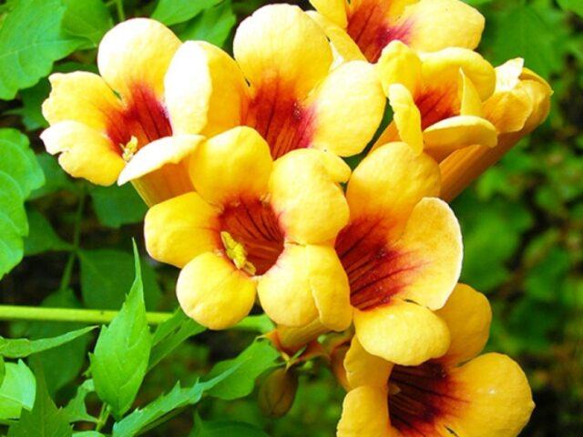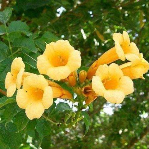 O enraizamento de Campsis Flava (Campsis radicans Flava) dá flores de cor amarelo brilhante, laranja, cujo comprimento chega a 12 cm. Liana cresce até 3 m. Pode ser colocada tanto ao sol como à sombra parcial. Resistência média no inverno - cria raízes apenas nas regiões do sul da Rússia.