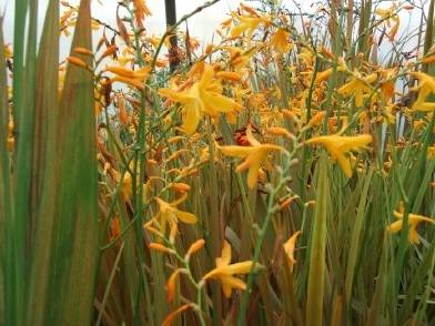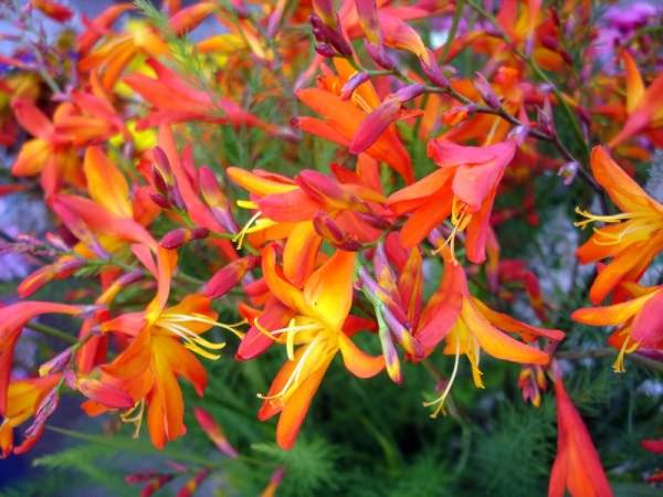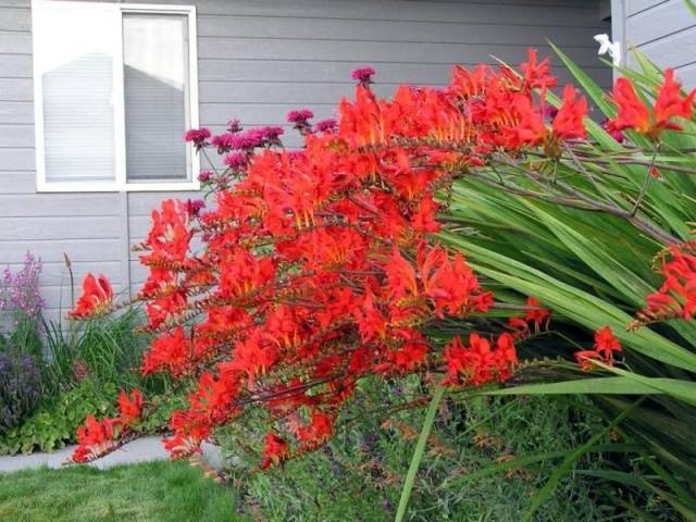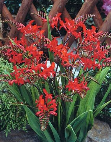 A pátria do crocosmia não está na China, mas na África do Sul. A planta pertence à família da íris. "Crocosmia" em grego significa "aroma de açafrão", pois suas flores secas cheiram a esta nobre especiaria. E o gladíolo chinês do jardim foi criado por Lemoine, um criador da França. A planta é às vezes chamada de gladíolo chinês.