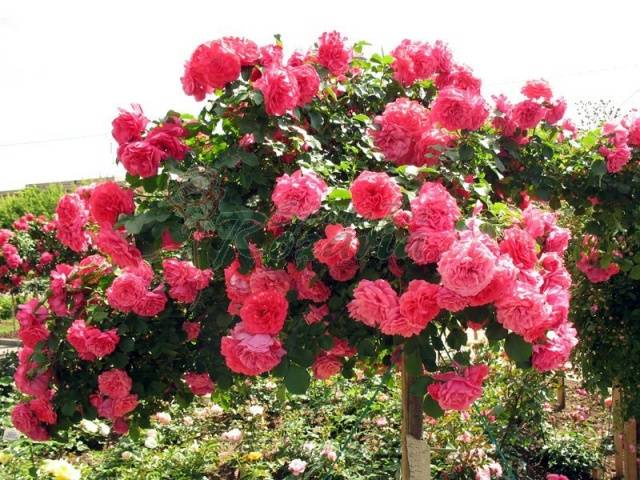 Ao cruzar com outras variedades, as rosas trepadeiras foram criadas a partir da escalada, que foi chamada de Climber. Eles florescem profusamente na forma de inflorescências coletadas de flores grandes. Algumas variedades também dão floração repetida. As plantas são robustas e resistentes ao oídio.