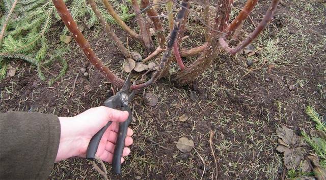 - em primeiro lugar, são removidos os rebentos doentes e danificados; ramos lignificados devem ser removidos com uma serra;