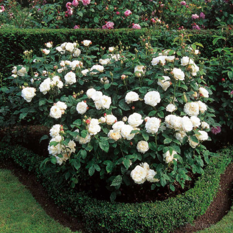 Os tipos leves de rosas do parque no jardim dão uma sensação de frescura e elegância. Portanto, muitas vezes são escolhidos como companheiros para variedades mais escuras. Esta vizinhança permite que se complementem. Mas mesmo como tênias contra o fundo de um gramado verde, eles parecem muito elegantes.