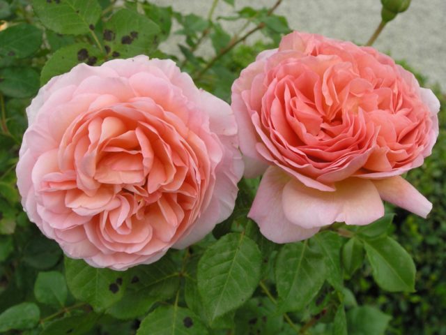 Esta variedade de rosas de parque foi criada em 1985. Baseia-se nas espécies amarelas e rosa-avermelhadas. Abraham Darby é caracterizado por uma altura do arbusto de 1,5-2,0 m, suas folhas são brilhantes, grandes, com uma rica tonalidade verde. Flores de Terry, consistindo de 50-55 pétalas. Sua tonalidade muda dependendo das condições climáticas: no calor são pêssegos, em dias frios - rosa. A floração começa em junho e vai até outubro com breves interrupções. O diâmetro dos botões em plena abertura atinge 12-14 cm Esta variedade apresenta um rico aroma frutado a morango.