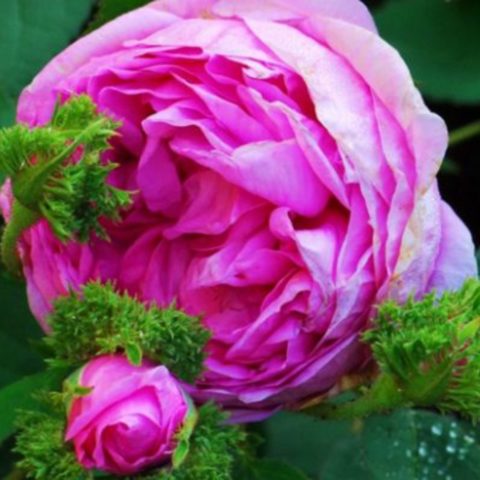 Esta variedade é uma das rosas-musgo, por isso apresenta cerdas verde-avermelhadas nas sépalas e nos pedicelos. O caprichoso "musgo" torna-se especialmente perceptível quando as flores se abrem. Quando tocado, exala um odor resinoso incomum. A Malvina tem arbustos de 150 cm de altura e 90 cm de largura. São pétalas de uma rica tonalidade rosa, com 17-25 em cada botão. As flores têm a forma de uma roseta plana.