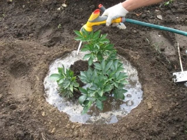 Todas as peônias são exigentes em umidade, especialmente na época da formação dos botões e da floração. Neste momento, eles são regados abundantemente, mas não mais frequentemente do que uma vez por semana. Um arbusto adulto requer cerca de 40 litros de água.Em tempo seco, a irrigação é realizada com mais frequência.