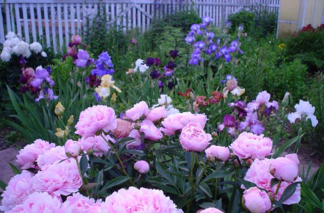 - As peônias ficam ótimas ao lado de plantas com flores pequenas. Como a variedade tem botões rosa-salmão, plantas com flores brancas, vermelhas, roxas, azuis ou roxas podem ser plantadas nas proximidades.