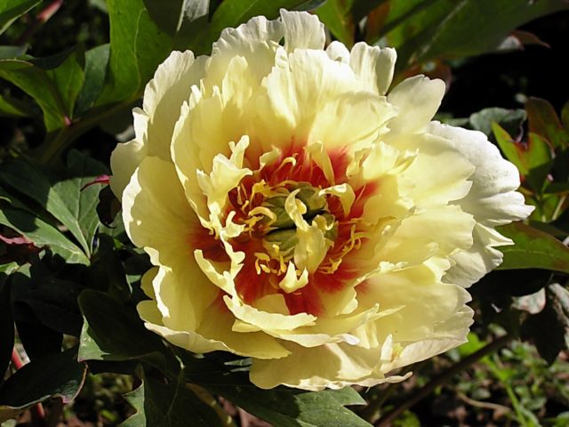 O Imperador Amarelo é uma das variedades ITO comprovadas. As flores semi-duplas atingem 13 cm de diâmetro e as pétalas são amarelas. Há uma rica mancha escarlate em sua base. Os botões desta variedade estão escondidos atrás de uma massa verde exuberante. A floração é rica.