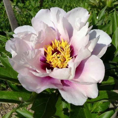 Norwegian Blush é um híbrido de ITO com flores semi-duplas de 17 cm de diâmetro e pétalas branco-rosadas. Existe uma mancha escura na base. Existem estames amarelos no centro. A altura da peônia ITO é de 85 cm. É importante plantar esta planta em solo bem drenado. Caso contrário, suas raízes apodrecerão.