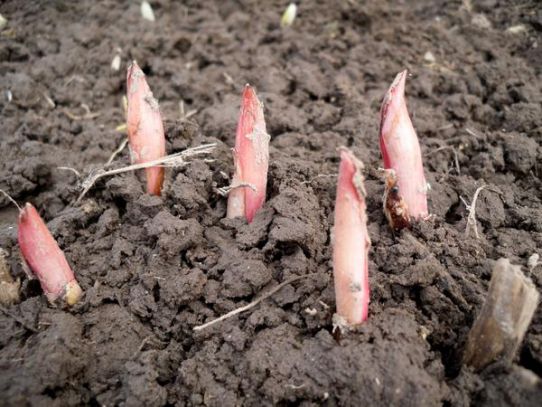 - É feito um monte no centro e a planta é colocada, previamente esticada e posicionada as raízes para baixo. Os botões de crescimento caem a uma profundidade de não mais do que 3-4 cm.