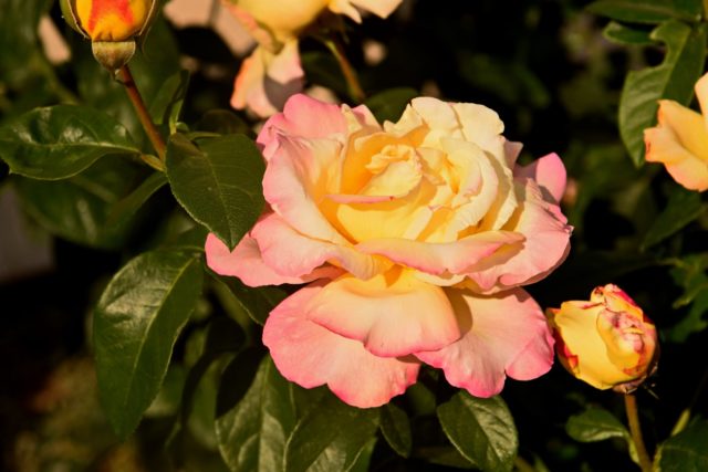 Entre a grande variedade de variedades de chás híbridos, a rosa Gloria Day se destaca por seu aspecto brilhante e espetacular. A combinação de delicados tons de amarelo e rosa torna-o reconhecível entre muitos outros. A comovente história da criação da variedade também é interessante.