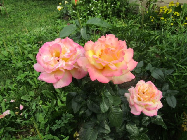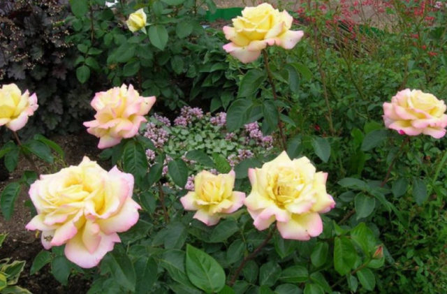 A rosa vai bem com outras vinhas - capim-limão, uvas, é efetivamente realçada por coníferas e samambaias. A variedade de escalada também parece impressionante ao lado de outras espécies.
