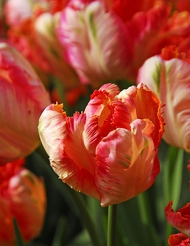 As tulipas papagaio na aparência lembram a plumagem de pássaros exóticos, daí o nome incomum. As cores variadas e as formas incomuns dessas variedades encantam os olhos e permitem que você crie uma ilha brilhante no local. As tulipas papagaio surgiram devido a mutações genéticas, seus progenitores eram variedades de floração tardia.
