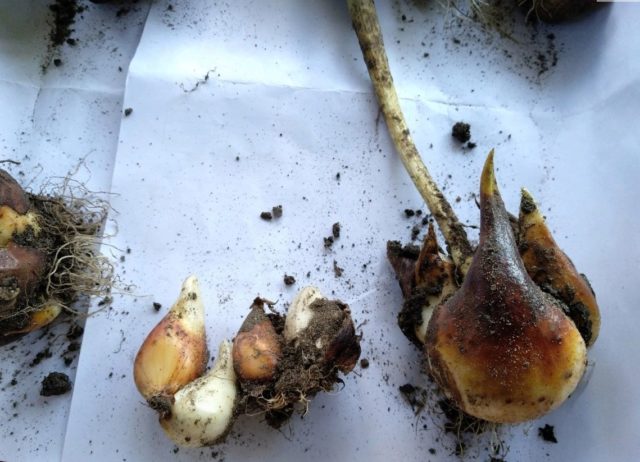 - Inspecione as lâmpadas escavadas com cuidado. Se manchas, cortes e outras falhas forem detectados, rejeite-os. Verifique novamente o material quanto a danos visíveis antes do plantio.