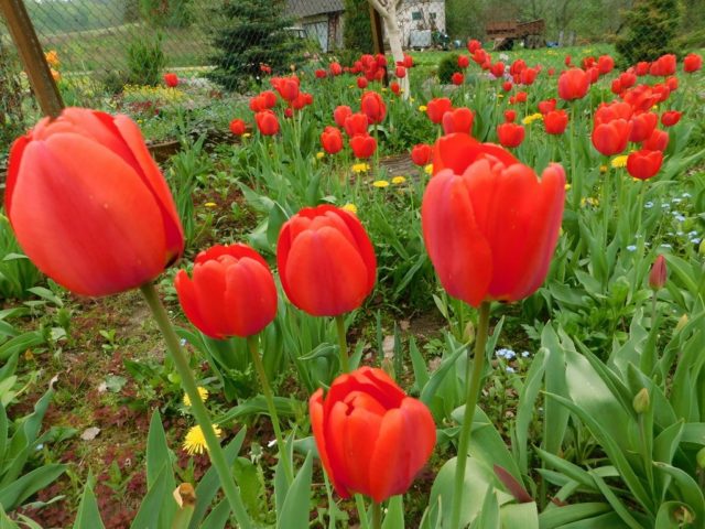 Ao plantar entre tulipas, você precisa deixar espaço livre