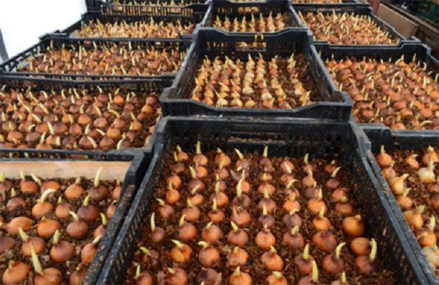- bulbos grandes e saudáveis de variedades precoces são escolhidos para o plantio;