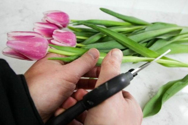 Um corte no caule de uma tulipa é feito obliquamente - assim a flor vai durar mais