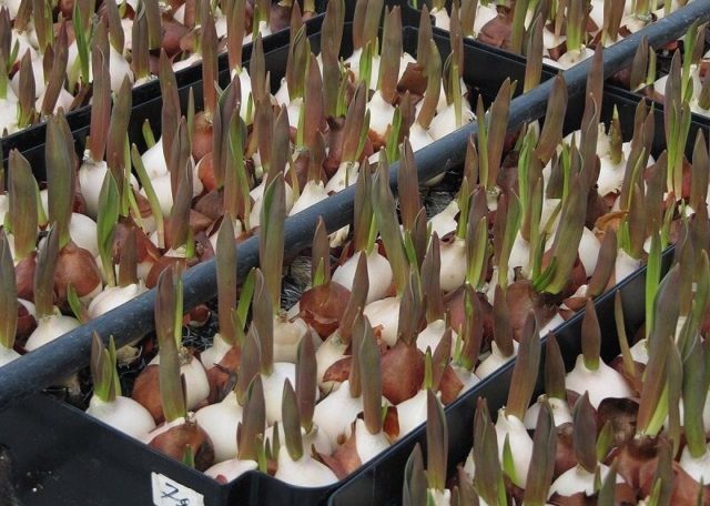 Após 16 semanas de resfriamento, as tulipas devem ser transferidas para um local aquecido, quando já devem ter dado os primeiros brotos. O método clássico é forçar em uma estufa, onde os bulbos começam a germinar com especial rapidez. No entanto, isso não é necessário, o procedimento pode ser realizado em casa.