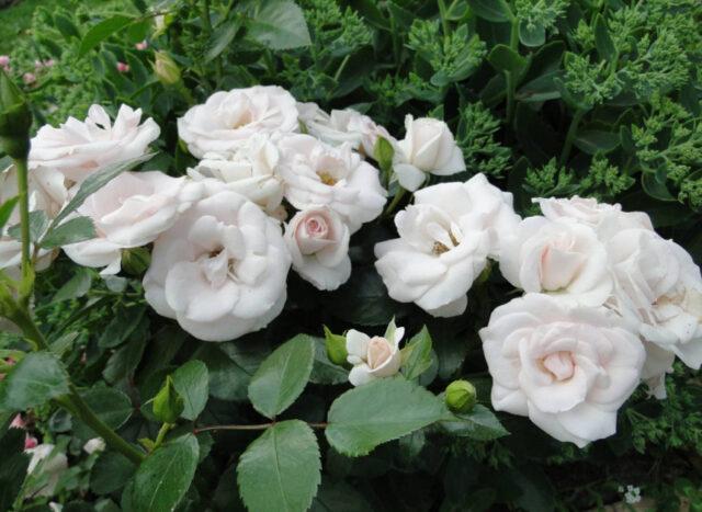 A planta fica interessante quando vários arbustos são plantados lado a lado, quando os galhos que caem, cobrindo o solo, formam um tapete verde sólido com flores brancas. Uma vez que a rosa é em miniatura, ela fica bem em vasos e vasos de flores. Muitos jardineiros plantam aspirina como floribunda em canteiros e mixborders. O melhor de tudo, seus botões são combinados com flores em tons de amarelo, azul, vermelho e roxo.
