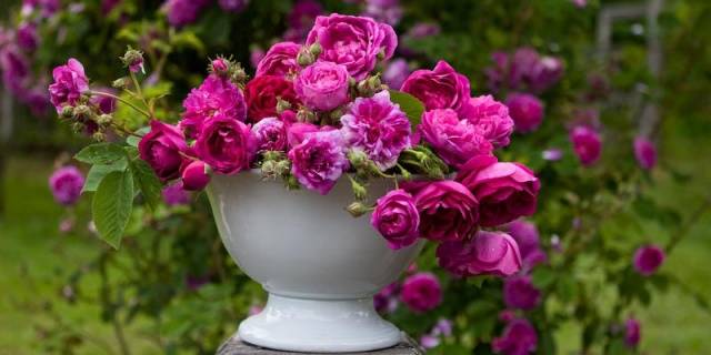 As variedades de rosas francesas são divididas em duplas e semi-duplas. A cor das flores é vermelha ou roxa. Essas cores são consideradas raras para rosas. As rosas francesas também são especiais por apresentarem um aroma agradável e pronunciado. Não é difícil cultivá-los. A variedade é despretensiosa e resistente. Tolera bem a geada, não requer abrigos densos.