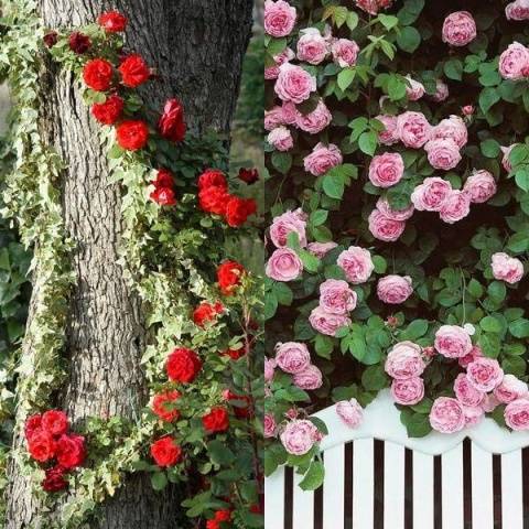 As variedades são ótimas para decorar o jardim. Com a ajuda deles, você pode não só decorar cercas e canteiros de flores, mas também esconder falhas e extensões em seu quintal.Mesmo troncos de árvores mortas são adequados como suporte. Variedades trepadeiras não só escondem tudo o que é desnecessário, mas também fazem um maravilhoso arranjo floral fora do comum. Sua aparência é bem mostrada na foto.
