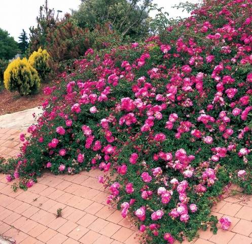As rosas de cobertura do solo em floração ocupam hoje uma posição de destaque na procura, não só entre as rosas, mas também entre outras plantas rasteiras.
