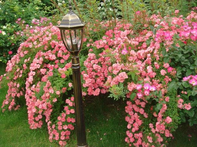 O segundo ponto é que por rosas de cobertura do solo geralmente queremos dizer uma planta com brotos rastejantes macios, projetada para cobrir uma área grande ou pequena de solo. Mas é preciso lembrar que ainda existem rosas caídas que podem chegar a 1,5m de altura, parte da pista vai levar um choque.