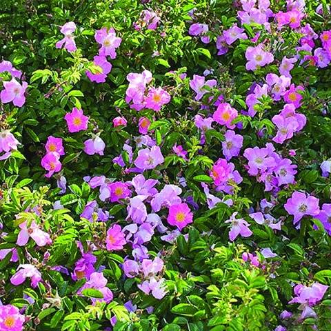 É a variedade de rosas de cobertura vegetal mais antiga que sobreviveu. Por sua aparência, é fácil determinar que é um híbrido interespecífico entre a Rosa Mosqueta Enrugada e a Rosa Mosqueta Vihura. Pertence ao segundo subgrupo. Os rebentos rastejantes espinhosos enraízam-se facilmente por conta própria e dominam rapidamente uma grande área. Esta variedade não é adequada para um canteiro de flores, mas é ideal se você tiver que fechar um declive ou fechar rapidamente uma grande área. Flores perfumadas simples de até 5 cm de diâmetro têm uma cor rosa escuro e são coletadas em pincéis de 3-5 peças. A variedade floresce uma vez, mas possui folhagem decorativa e alta resistência ao frio e às doenças.