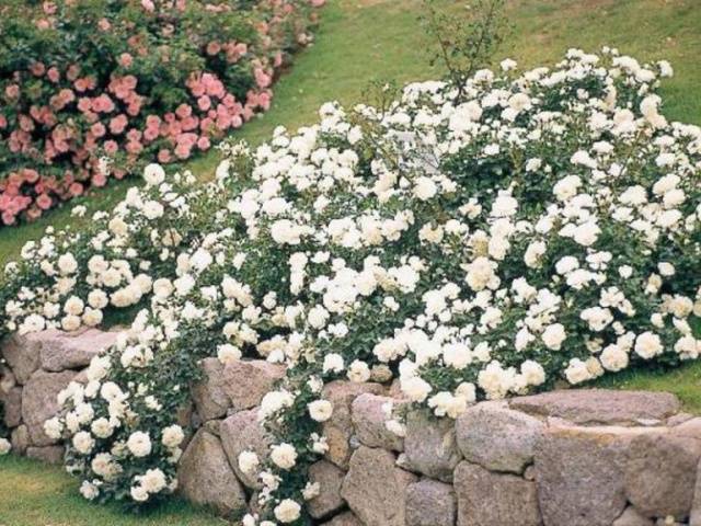 Rosas de cobertura do solo podem ser plantadas em qualquer encosta, e isso não só vai decorá-la, mas também protegê-la da erosão. Essas plantas podem cobrir saliências e outras irregularidades no solo. Com a ajuda de variedades rasteiras, se necessário, você pode mascarar a eclosão.