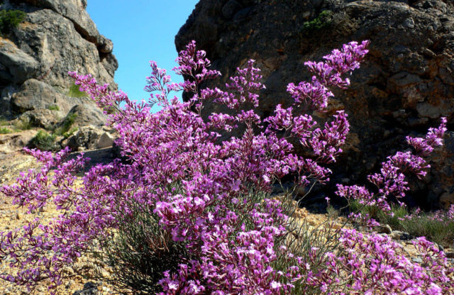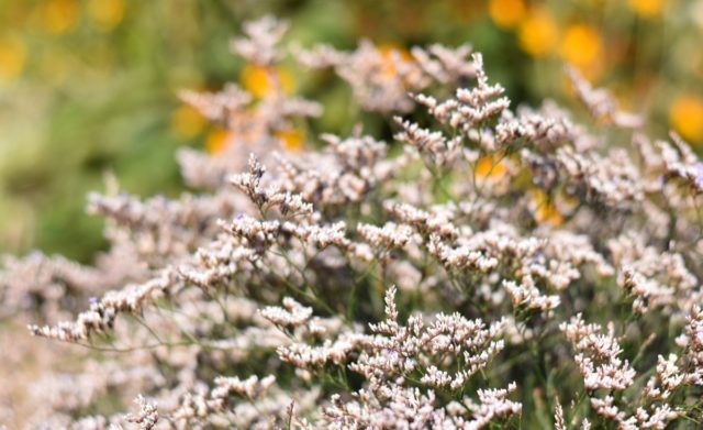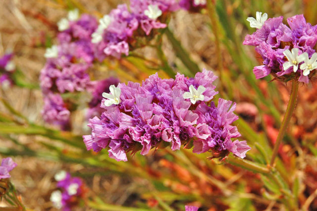 O florescimento das flores de limônio começa em julho e dura até o início das geadas de outono.