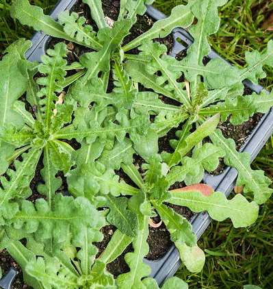 No momento do transplante em terreno aberto nos arbustos de limônio, uma roseta de folhas verdes brilhantes já está suficientemente desenvolvida