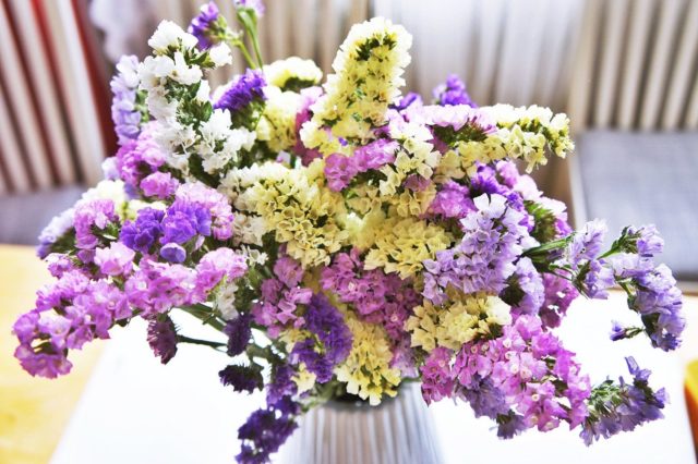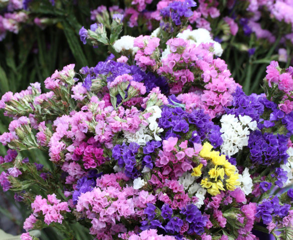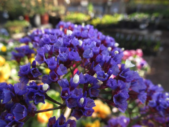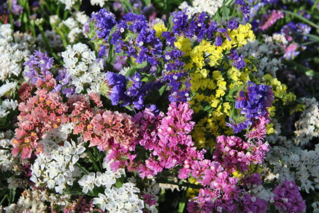 Em condições de estufa, o statice é cultivado para corte para formar buquês