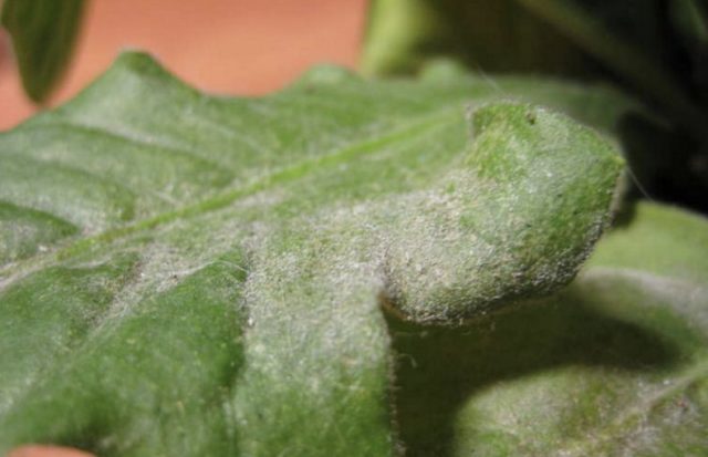 - Botrytis o cinza aparece com manchas de mofo nas chapas. Os esporos da doença se multiplicam rapidamente em condições úmidas.