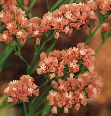 - A variedade decorativa de Limonium Damasco é caracterizada por inflorescências rosa-laranja.