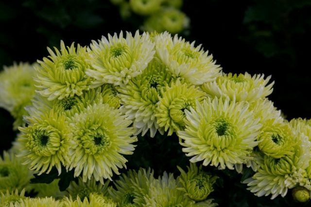 A principal vantagem de uma cultura em floração é a resistência a baixas temperaturas. O crisântemo verde arbusto floresce por muito tempo e em abundância. As flores cortadas mantêm as suas qualidades decorativas por muito tempo, têm um aspecto fresco.