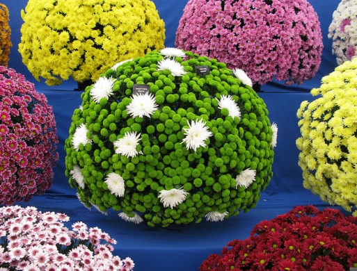 Bolas decorativas feitas de crisântemos de todas as cores irão decorar áreas de parques, gramados de cidades, locais de recreação e entretenimento, exposições.