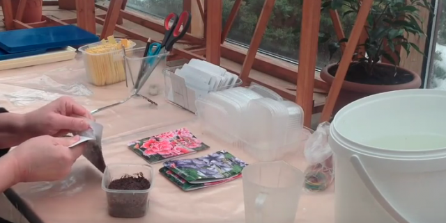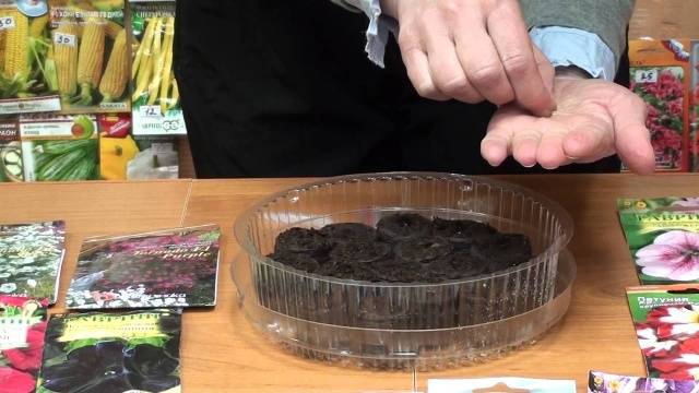 Crescer mudas de petúnias, pode levar qualquer recipiente, recipientes de plástico com tampa para saladas, pastelaria, etc. são ideais.