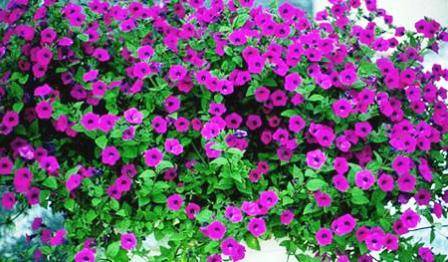 - Em cascata - a forma de petúnias com tiros longos, de até dois metros. Eles são capazes de crescer em diferentes direções: para os lados, para cima e para baixo. Eles são espalhados com flores ao longo de todo o comprimento dos brotos.