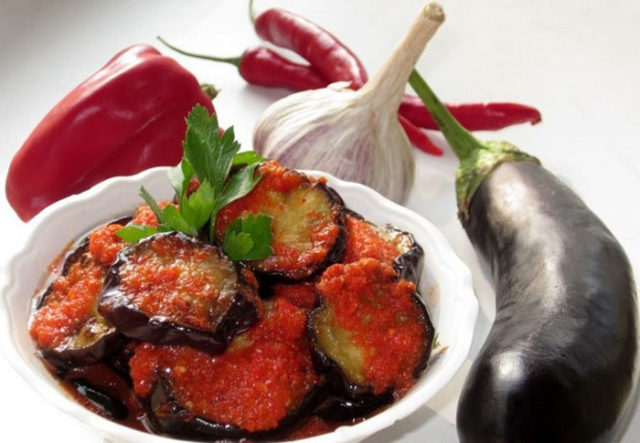 Berinjelas ao estilo Kherson com cenoura e pasta de tomate
