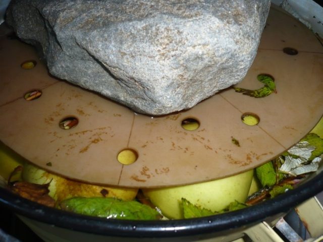 - As frutas lavadas com água são colocadas em barricas em camadas. Entre eles, é aconselhável colocar folhas de palha, groselha ou cerejeira.