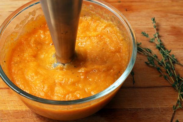 Para transformar vegetais em purê, use um moedor de carne ou liquidificador. Coloque o purê em uma panela e cozinhe, mexendo por cerca de 50 minutos. O fogo deve ser pequeno. Sal, acrescente açúcar, pimenta, adicione verduras picadas, alho picado em uma prensa 10 minutos antes do final da estufagem.