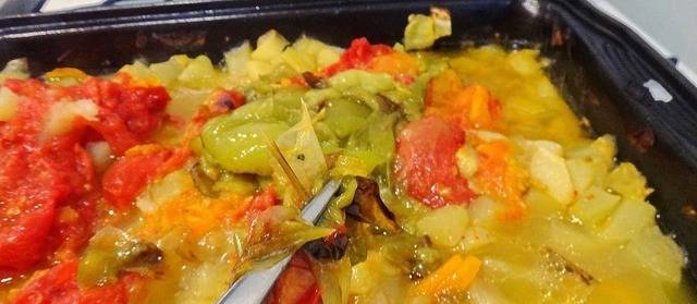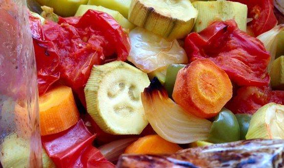 A primeira meia hora após o início do caviar de cozimento de vegetais cozidos, você pode fazer outras coisas. Em seguida, retire a assadeira e misture os vegetais delicadamente. Defina para assar por mais 40-45 minutos.