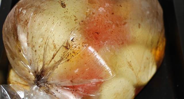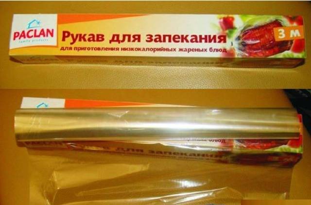 A manga também é amarrada do outro lado e os legumes nela são ligeiramente misturados por fora. Em seguida, é colocado em uma assadeira no forno, que é pré-aquecido a uma temperatura de + 180 ° C por uma hora. No forno, a manga deve ser colocada de forma a não tocar nas paredes superiores e laterais, pois ao ser aquecida dilata e, em contacto com o metal quente, pode danificar-se.